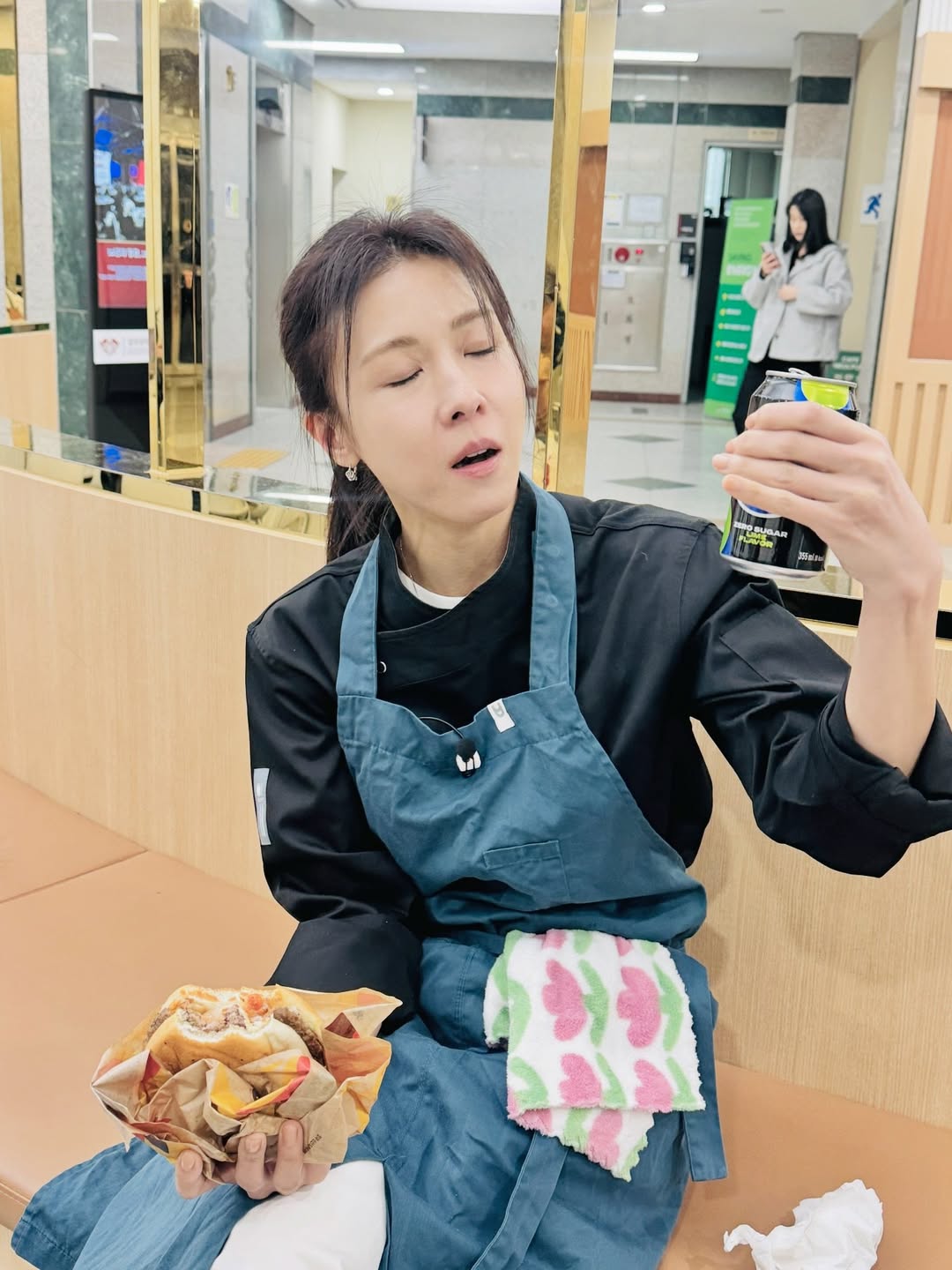 【하지원 Ha Ji Won ハ・ジウォン 公式Instagram】もうすっかり新入生っぽいね〜wwwww わぁ〜 実習終わって凄くお腹すいた〜🍔🥤 お〜コーラこの味だね!2026.4.9