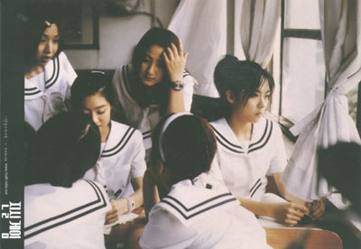 「まだその映画、見てないんです!私どうでした?うまくできました?」天下のアン・ソンギと常に緊張感の中で対峙したアンファン・テリブル。ハ・ジウォンは今、急上昇中だ。18日公開を控えた『真実ゲーム』が初映画だが、すでに二本を同時に撮影している。大邱・啓明大学で撮影中の『同感』と、中央大学安城キャンパスを舞台にした『友引忌』。どちらも女子大生役で、檀国大学演劇映画科2年を休学中の彼女にとって初めて自分の年齢に合った役だ。少し前に終了したKBSドラマ『学校II』では不良グループのリーダー役で少年のような魅力を見せ、その前にはY2Kグループのミュージックビデオで悲恋の顔を演じ、10代ファンに強い印象を残した。