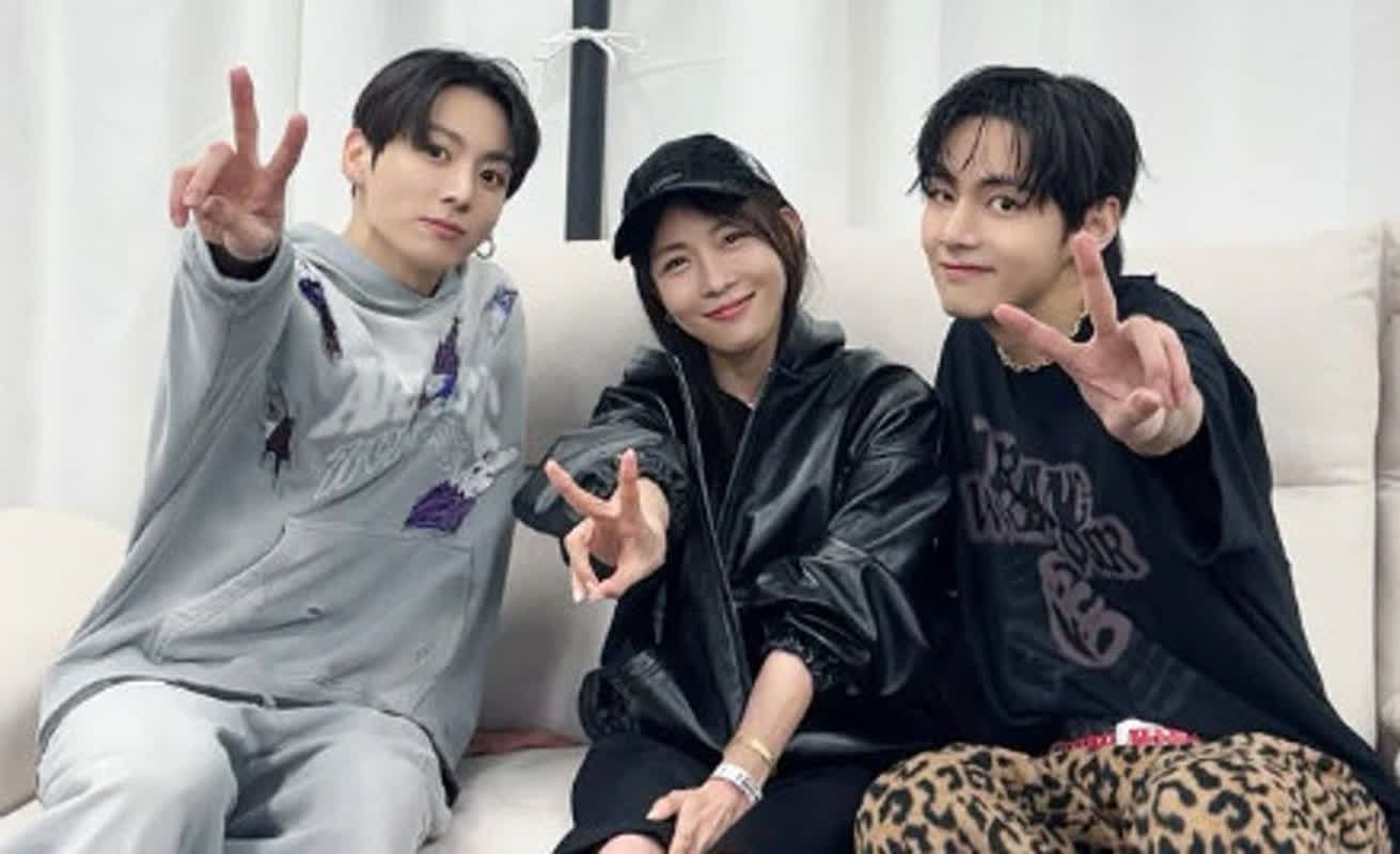 同時,她公開了與 V、柾國合影的照片。照片中,河智苑與 V、柾國並肩而坐,面帶微笑,並比出「V」手勢。