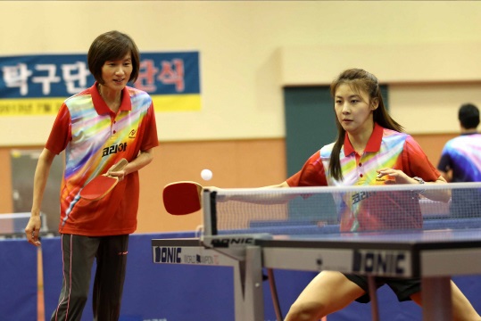 ◇ ヒョン・ジョンファ(左)- ハ・ジウォンと最高のダブルス組が1年ぶりに再会した。 20日、京畿道・軍浦の農心卓球団訓練場で「コリア」卓球団の創設式が行われた。 1991年千葉世界卓球選手権南北単一チームを扱った映画『ハナ 〜奇跡の46日間〜(KOREA・コリア)』の俳優、スタッフらが南北体育交流のための卓球団として再会した。 創立式後の親善ダブルス試合で、ヒョン・ジョンファ大韓卓球協会元専務とハ・ジウォンが攻撃に成功して歓呼している。
