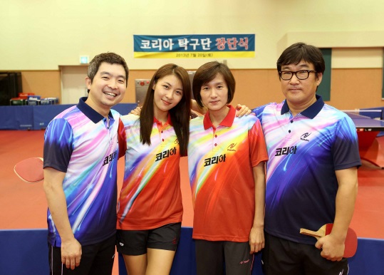 20日、京畿道軍浦の農心卓球団練習場で女優のハ・ジウォンがいきなり登場した。 特有のはつらつとしたエネルギーに卓球場が明るくなった。 ヒョン・ジョンファ大韓卓球協会元専務(韓国馬事会総監督)と抱き合った。 昨年5月、映画『コリア』公開以来、久しぶりに顔を合わせた。 映画を撮る間中、「コリア」の名前で卓球チームを作ろうと約束した。 一年後、その夢のような約束が現実になった。 ヒョン・ジョンファの「コリア卓球団」創設式と義理の「コリア」チームが再び一つになった。