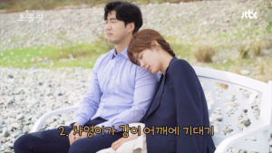 「2.チャヨンがカンの肩に寄りかかる」
