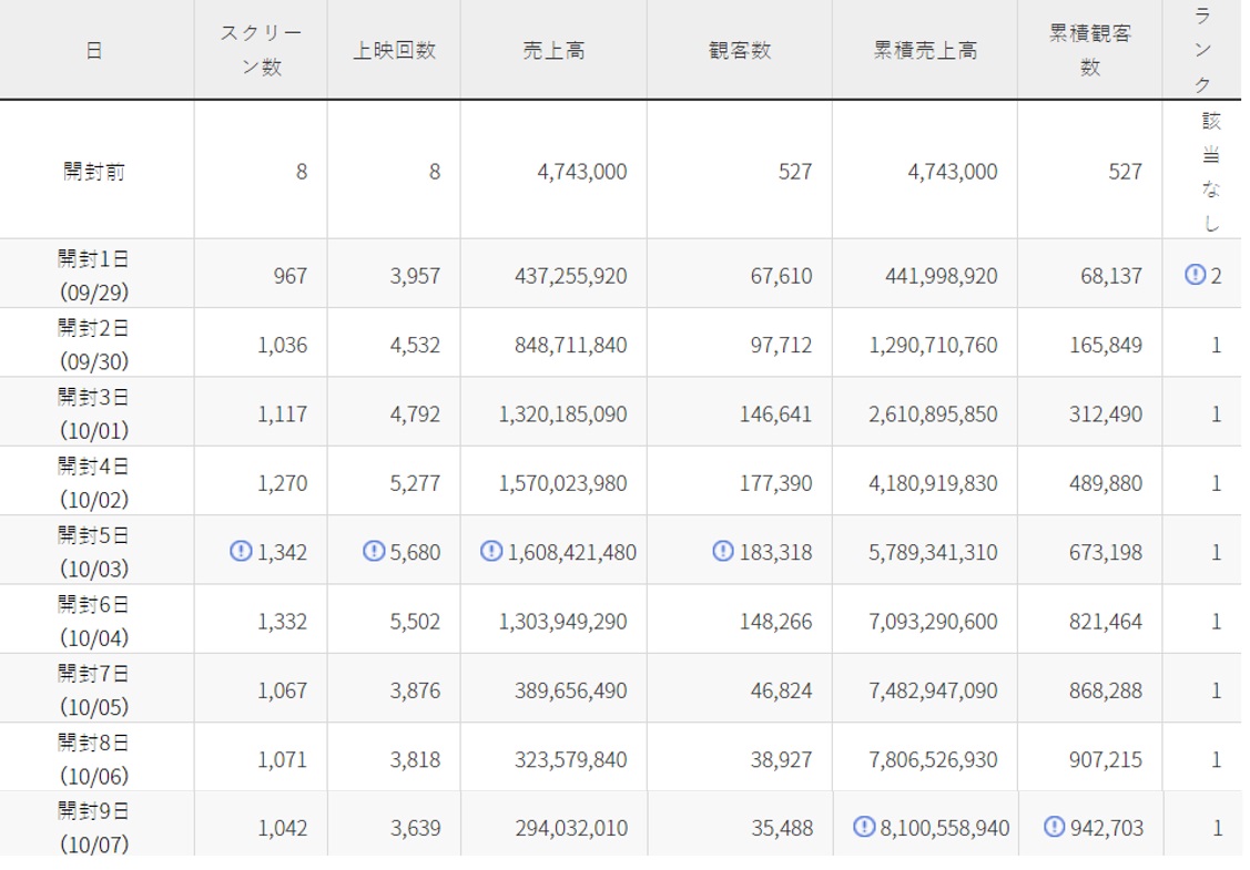 日付別スクリーン数、上映回数、座席数などのシェア統計情報はこちらです。👇🏻