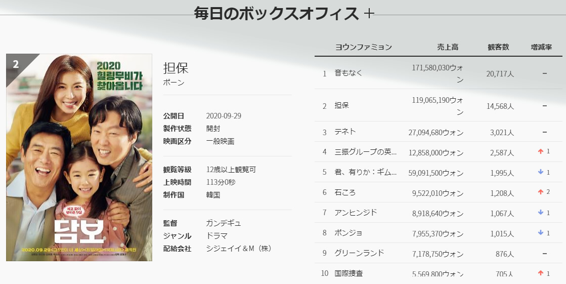 昨日はボックスオフィス2位にランクインして、