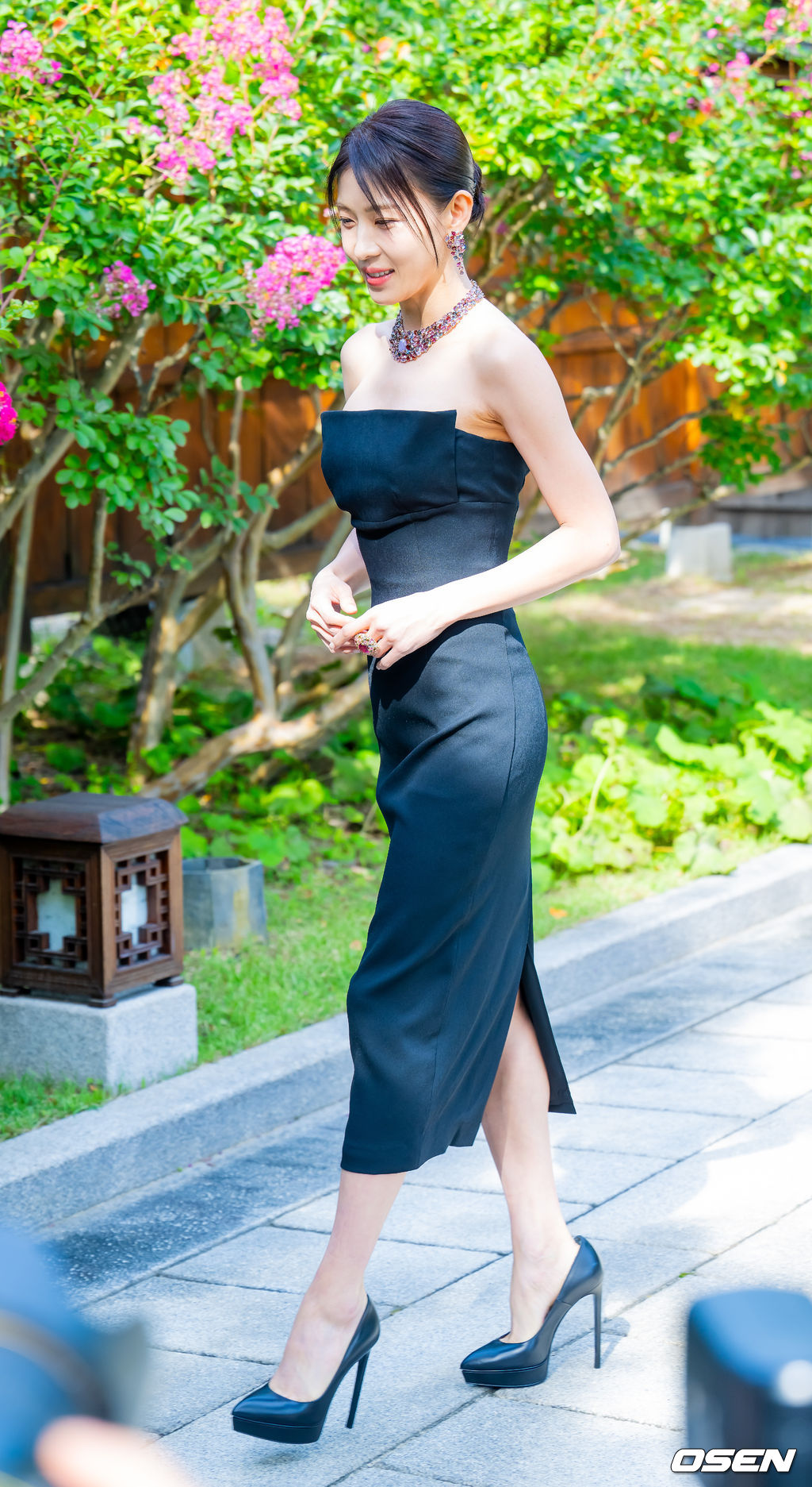チューブトップドレスのラインが、ジウォンオンニの美しいボディラインをさらに際立たせていて、