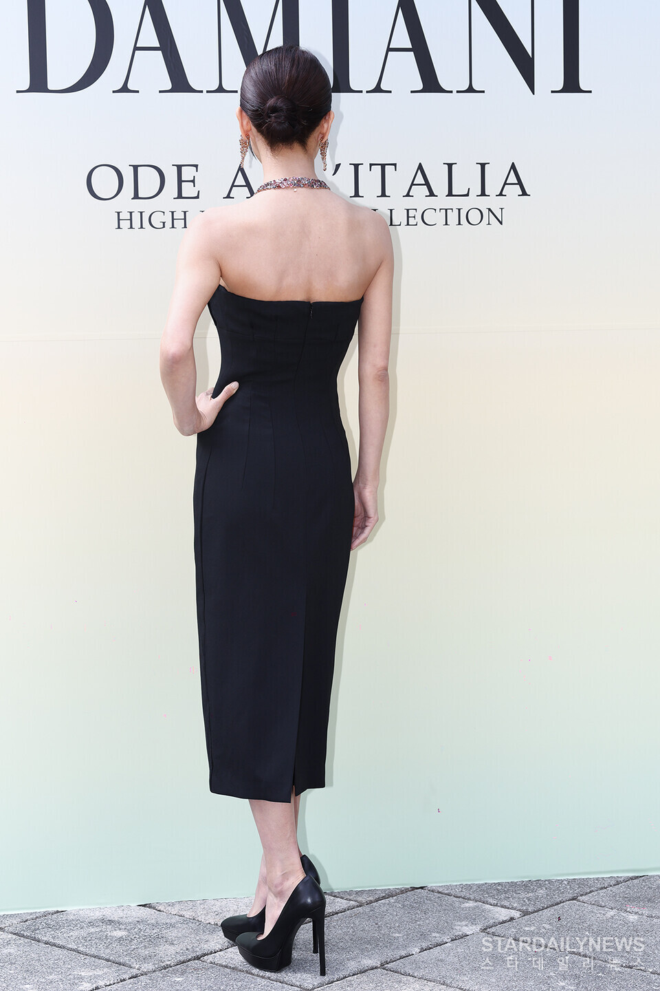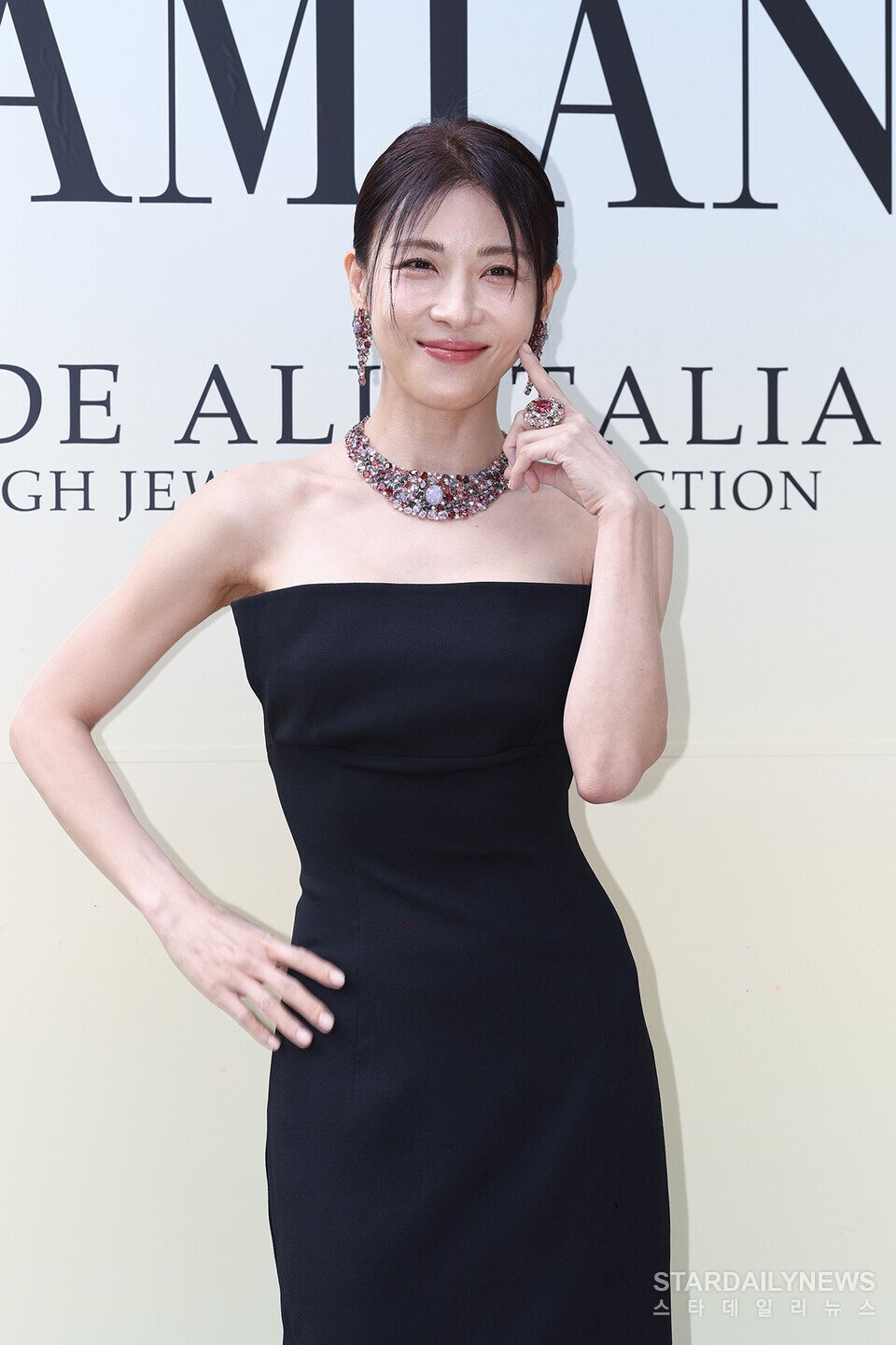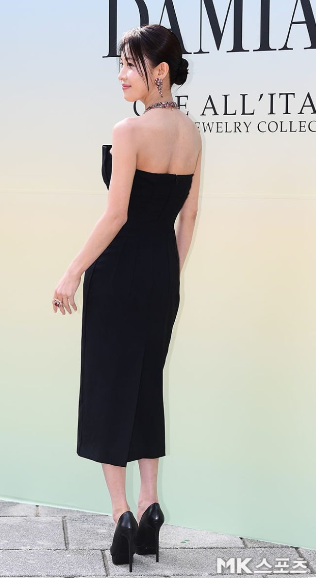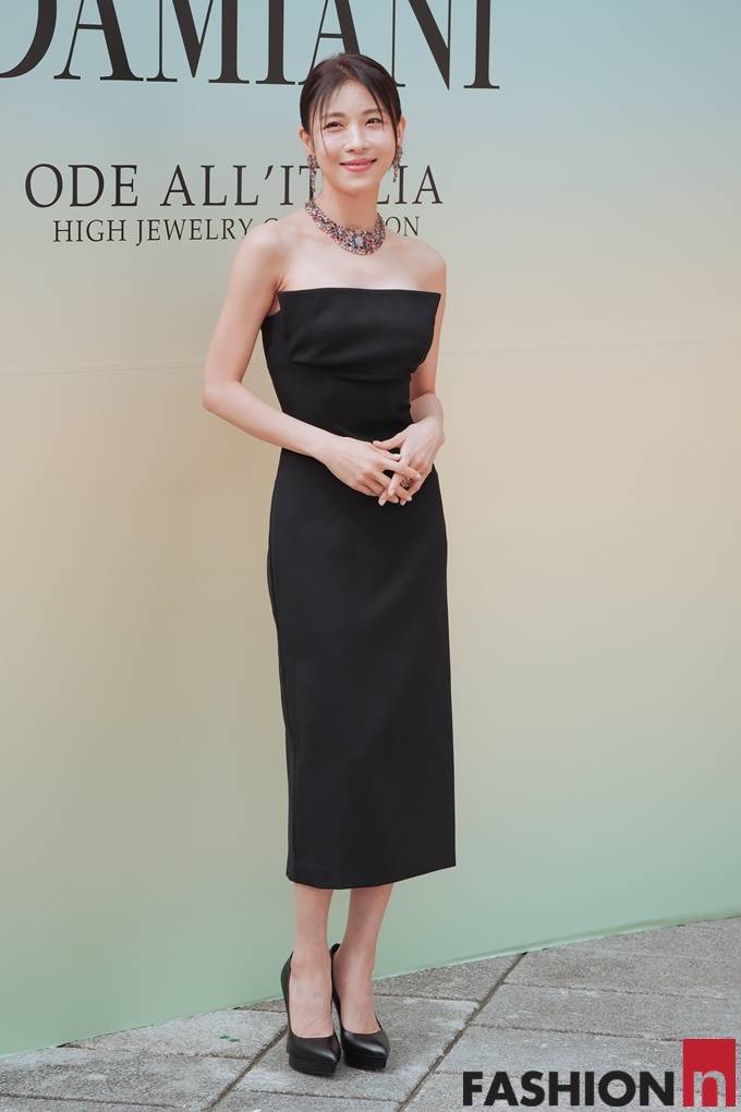 この日のイベントでハ・ジウォンは、ブラックのオフショルダードレスに高級感あふれるダミアーニのジュエリーを合わせて登場。大胆なネックレスとイヤリング、そして優雅なハイヒールが、韓国家具博物館の温かみのあるクラシックな雰囲気と見事に調和していた。アンティークな外観の博物館前でポーズを取った彼女は、魅惑的な姿で会場の雰囲気を一層引き立てた。