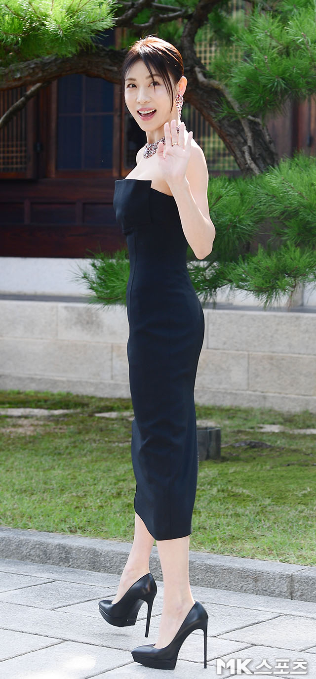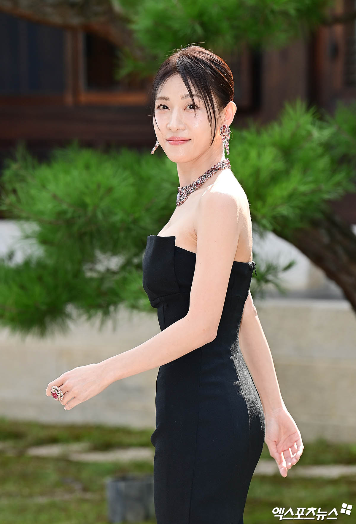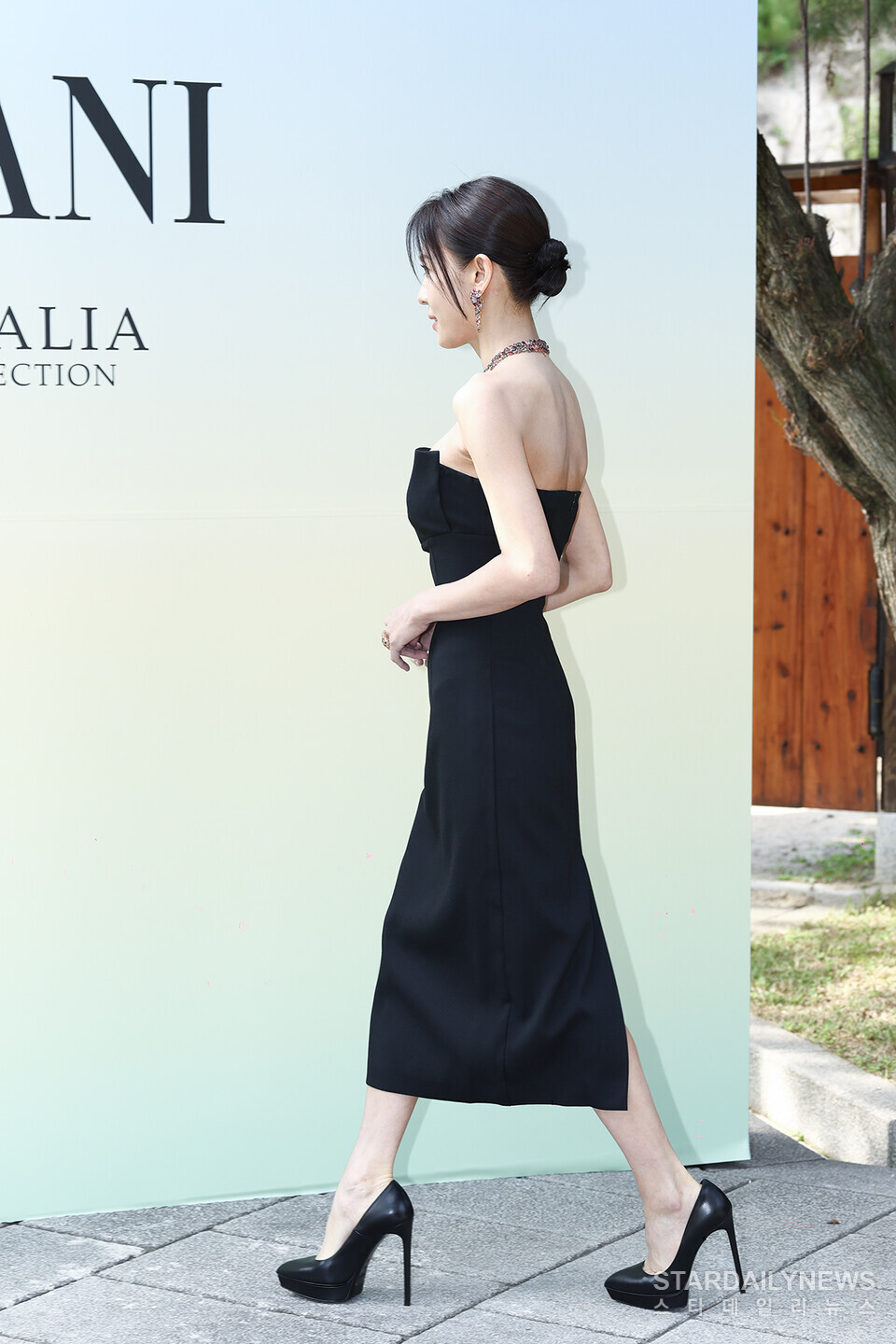 この日のイベントでハ・ジウォンは、ブラックのオフショルダードレスに高級感あふれるダミアーニのジュエリーを合わせて登場。大胆なネックレスとイヤリング、そして優雅なハイヒールが、韓国家具博物館の温かみのあるクラシックな雰囲気と見事に調和していた。アンティークな外観の博物館前でポーズを取った彼女は、魅惑的な姿で会場の雰囲気を一層引き立てた。