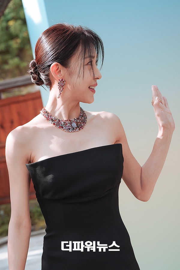 ハ・ジウォンはカメラの前で明るい笑顔と余裕のあるポーズを見せ、女優であり画家としての唯一無二のオーラを放った。ブラックのハイヒールときちんとまとめたヘアスタイルが全体のルックを上品に仕上げ、ジュエリーの華やかさと完璧なバランスを成していた。