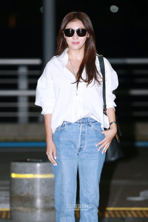 深夜便でハワイへ向かうジウォンオンニ、この日はオーバーサイズの白いシャツと