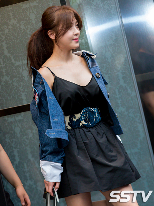 ハ・ジウォンはブラックスリップミニワンピースにワイドベルトでボリュームを生かして演出した後、オーバーサイズデニムジャケットを後ろに反らして着て肩と胸を露出した。 ハ・ジウォンが選んだデニムジャケットは、オーバーサイズのロングスリーブで袖口を折り返して着てホワイト鞍を表わし、まるでシャツをレイヤードしたように二重効果を与え、キルヒールストラップシューズに足首靴下を履いてキュートな雰囲気を加えた。