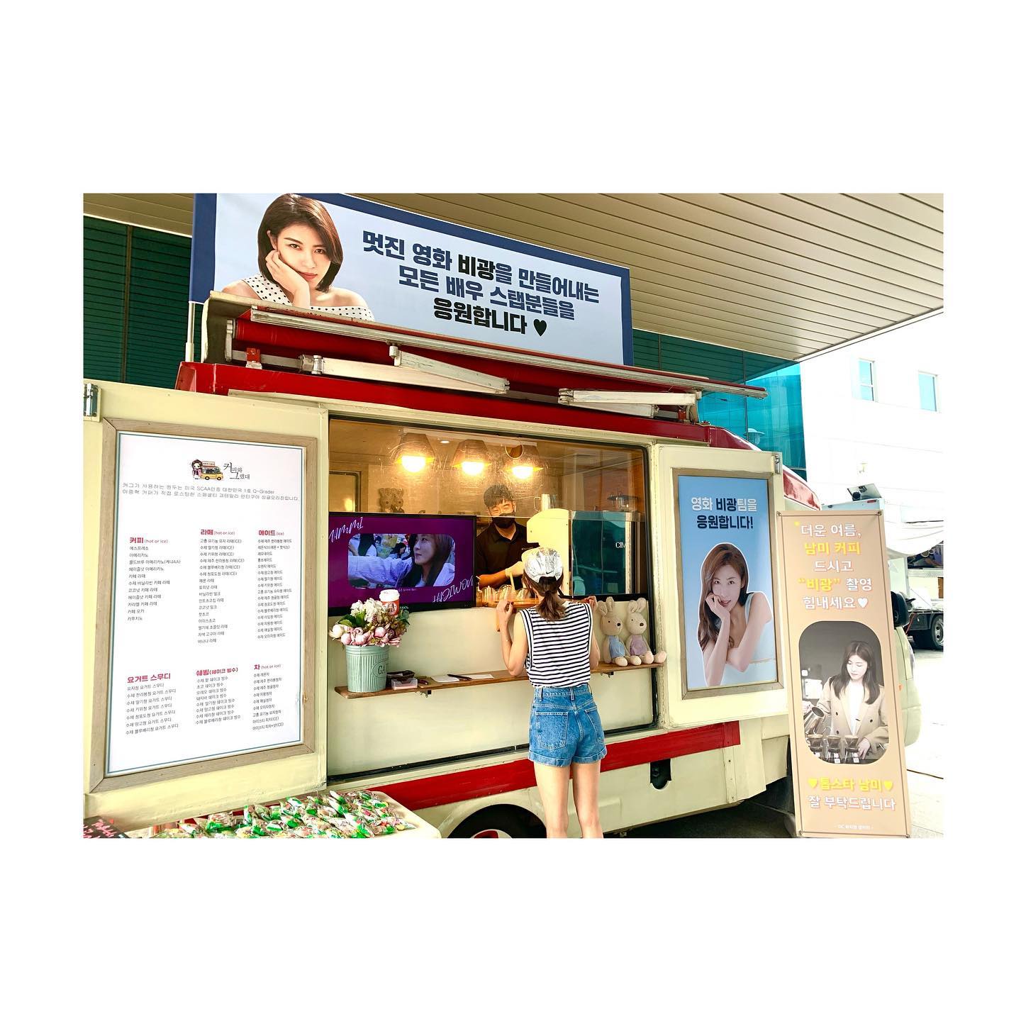 ハ・ジウォンギャラリーが『雨光』の撮影現場にコーヒーカーを差し入れて、
