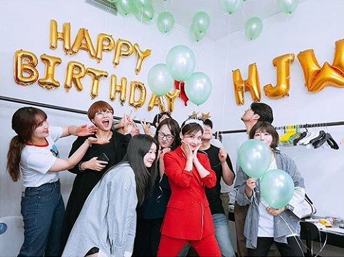 壁には「HAPPY BIRTHDAY HJW」の風船が飾られていて、デコレーションがとても素敵です!