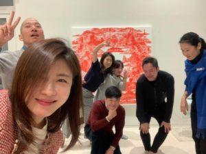 後ろに写っているのは「Between Red」で有名な韓国のアーティスト、イ・セヒョンさんの作品です。