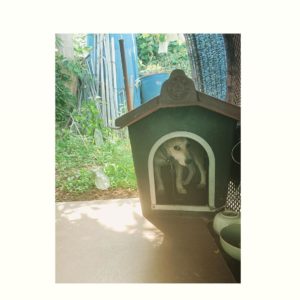 まずは天然木のナチュラルな風合いの犬小屋にこもるわんちゃん🐶