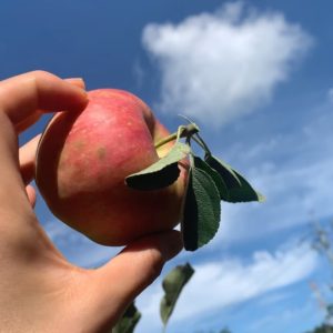 摘み立てのりんご。🍎葉っぱ🍃がついてて可愛いですね。💓