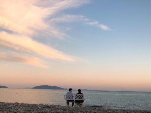 二人の後ろ姿も夕焼けの空も美しくて、本当に絵になりますね。😍