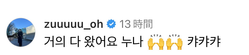 「もうすぐです、ヌナ🙌🏻🙌🏻🙌🏻キャキャキャ」