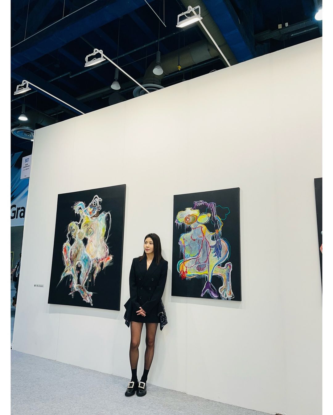 写真の中には国内最大のアートフェアである「2024 Kiaf」に参加し、本人の絵の前に立ってポーズを取っているハ・ジウォンが含まれている。 オールブラックの衣装を着て端正な雰囲気を出すハ・ジウォンの後ろに見える絵の作品性が目を引く。