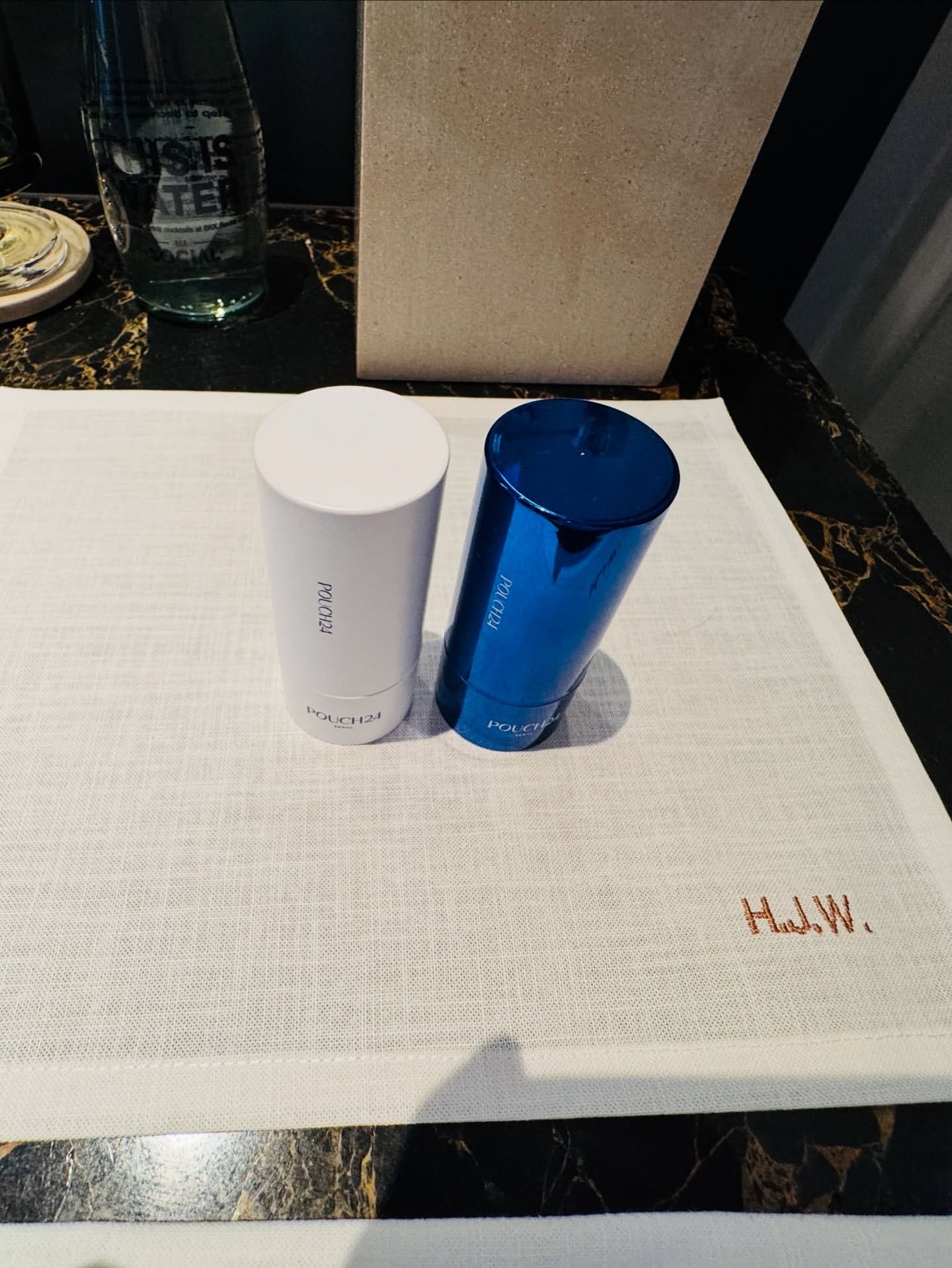 テーブルクロスにはジウォンオンニのイニシャル 「H.J.W.」 の刺繍が入ってて、