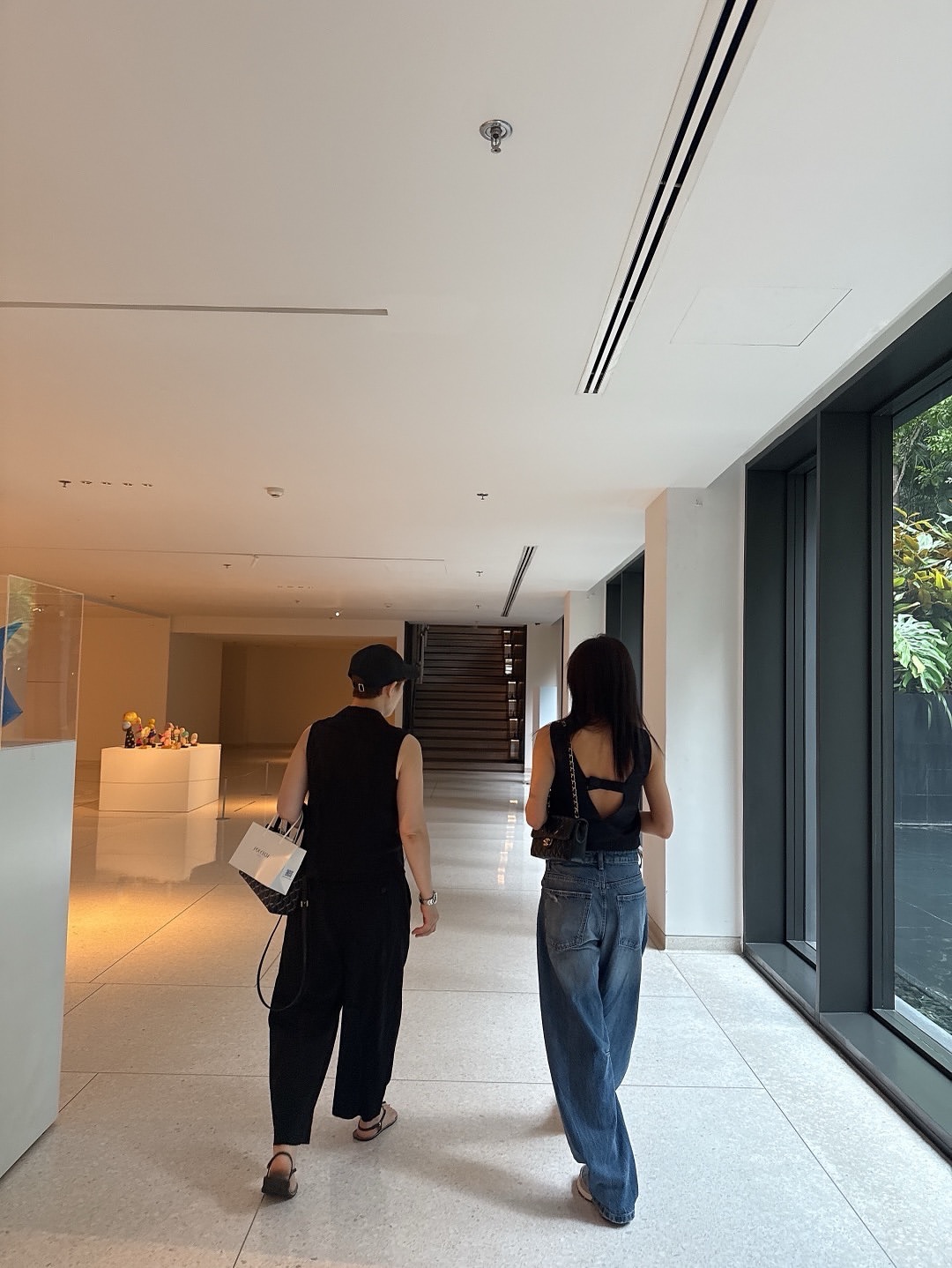 特にテーブルのガラスに映ったシルエットが優雅な魅力をさらに引き立てていた。別のカットでは展示会を訪れ、芸術作品を鑑賞しながらゆったりとした時間を過ごす様子も見られた。