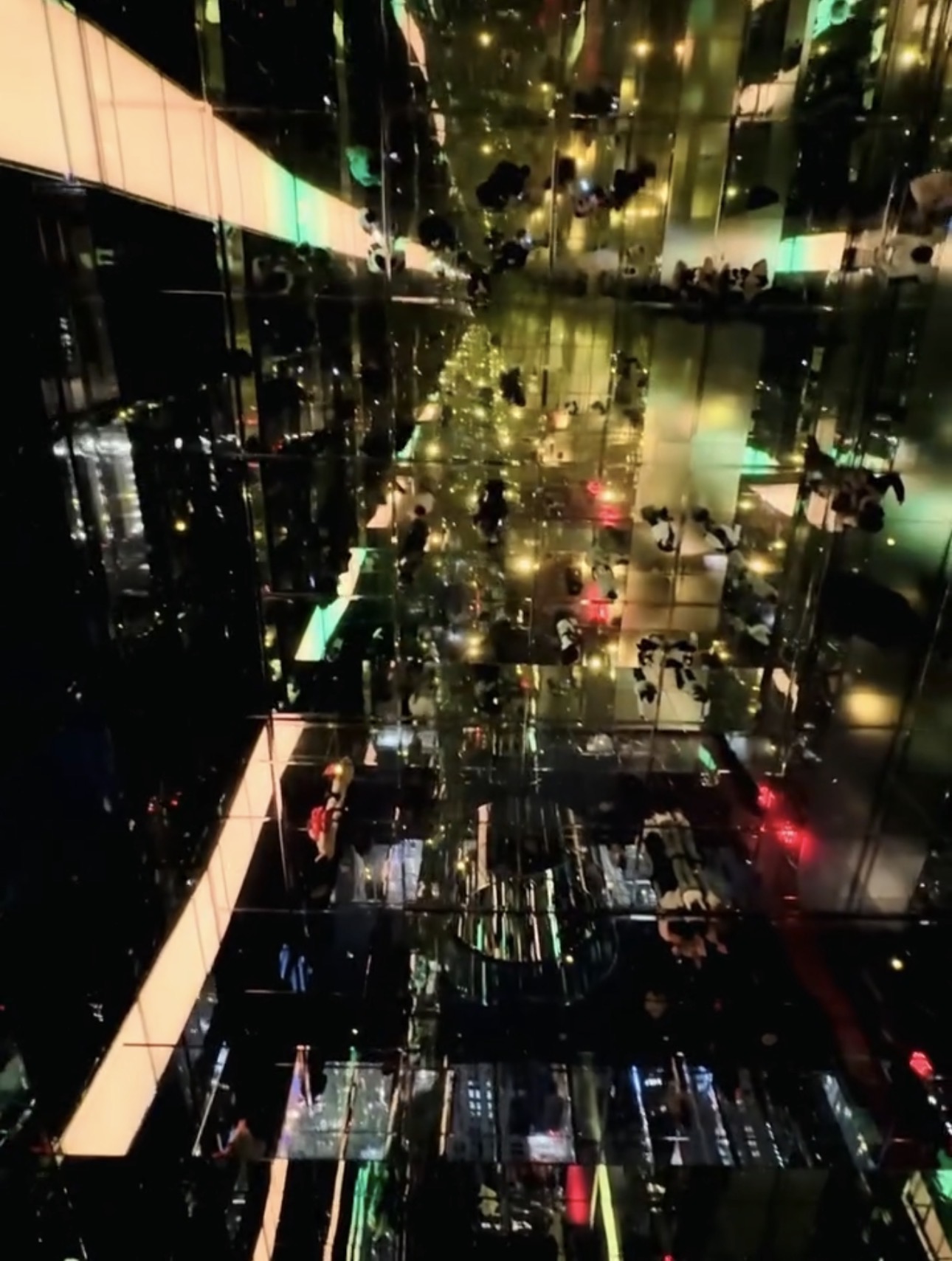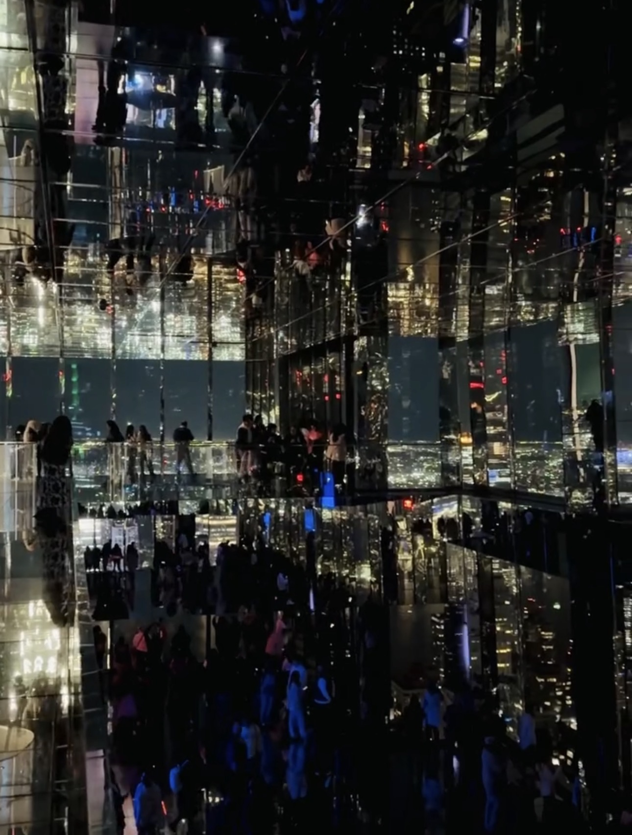 展望台には、床・壁・天井がすべて鏡張りになった広大な空間があり、