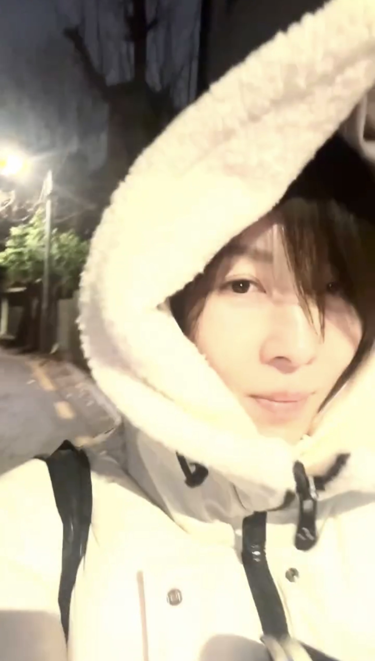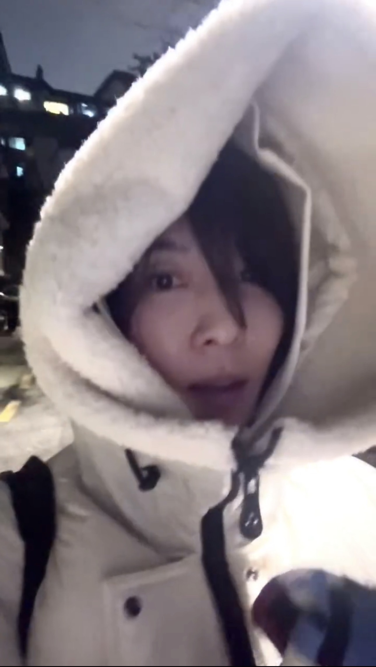 「첫눈이 내린다~너무 이뻐~☃️(初雪が降ってきた〜とても綺麗〜☃️)」