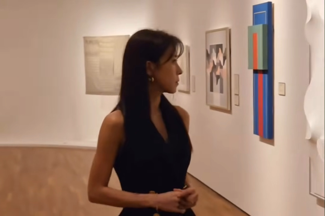 写真の中でハ・ジウォンはシンガポール国立美術館で展示された作品を観覧している。