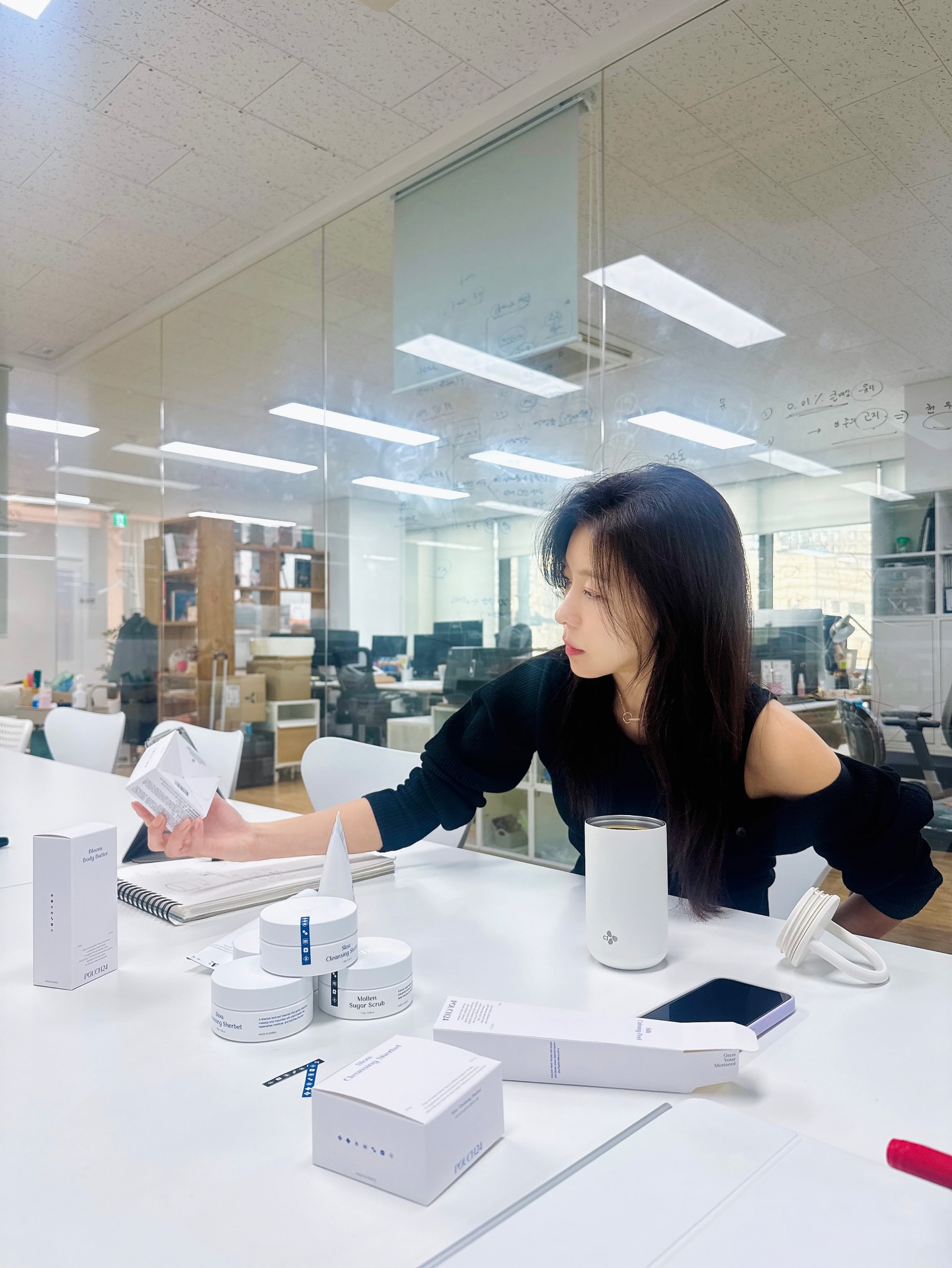 「오늘은 회사에서 파우치24 신제품 회의 중이에요~💙