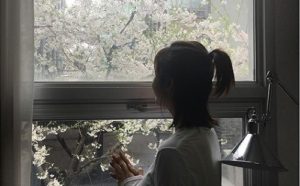 事務所のジウォンオンニの部屋から桜が見えていい眺めですね。💗
