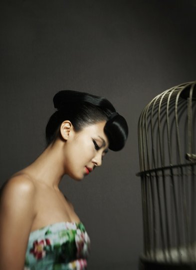 激しい恋に落ちる映画のせいだろうか。 丸く巻き上げたバンヘアに禅スタイルのジャパニーズ・メイクと強烈なレッドのリップカラーが印象的だ。衣装もオリエンタルスタイルの光沢のあるサテン衣装で、高慢で挑戦的な女性としてまた違った姿を演出した。