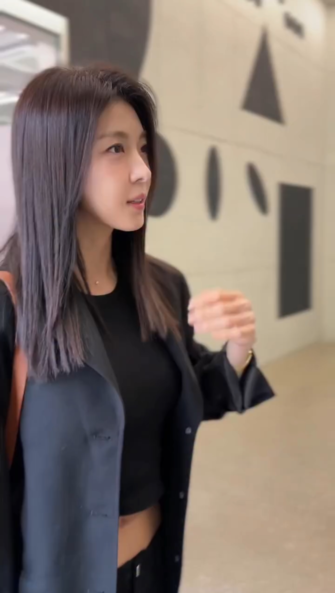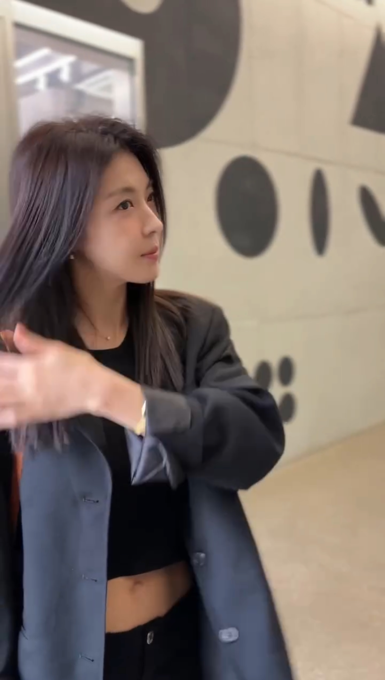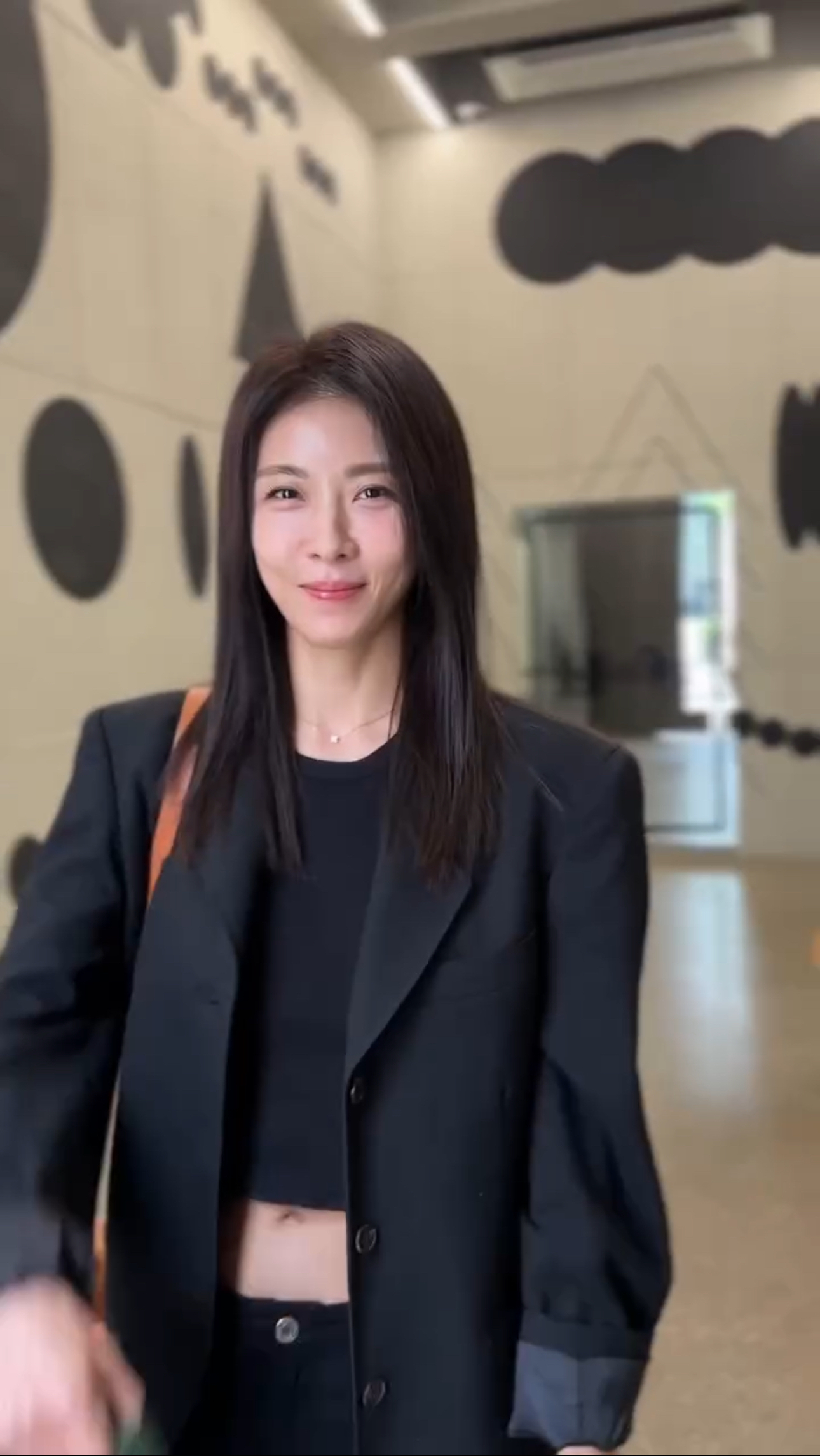 オールブラックのへそ出しコーディネートで登場したジウォンオンニ。🖤🖤