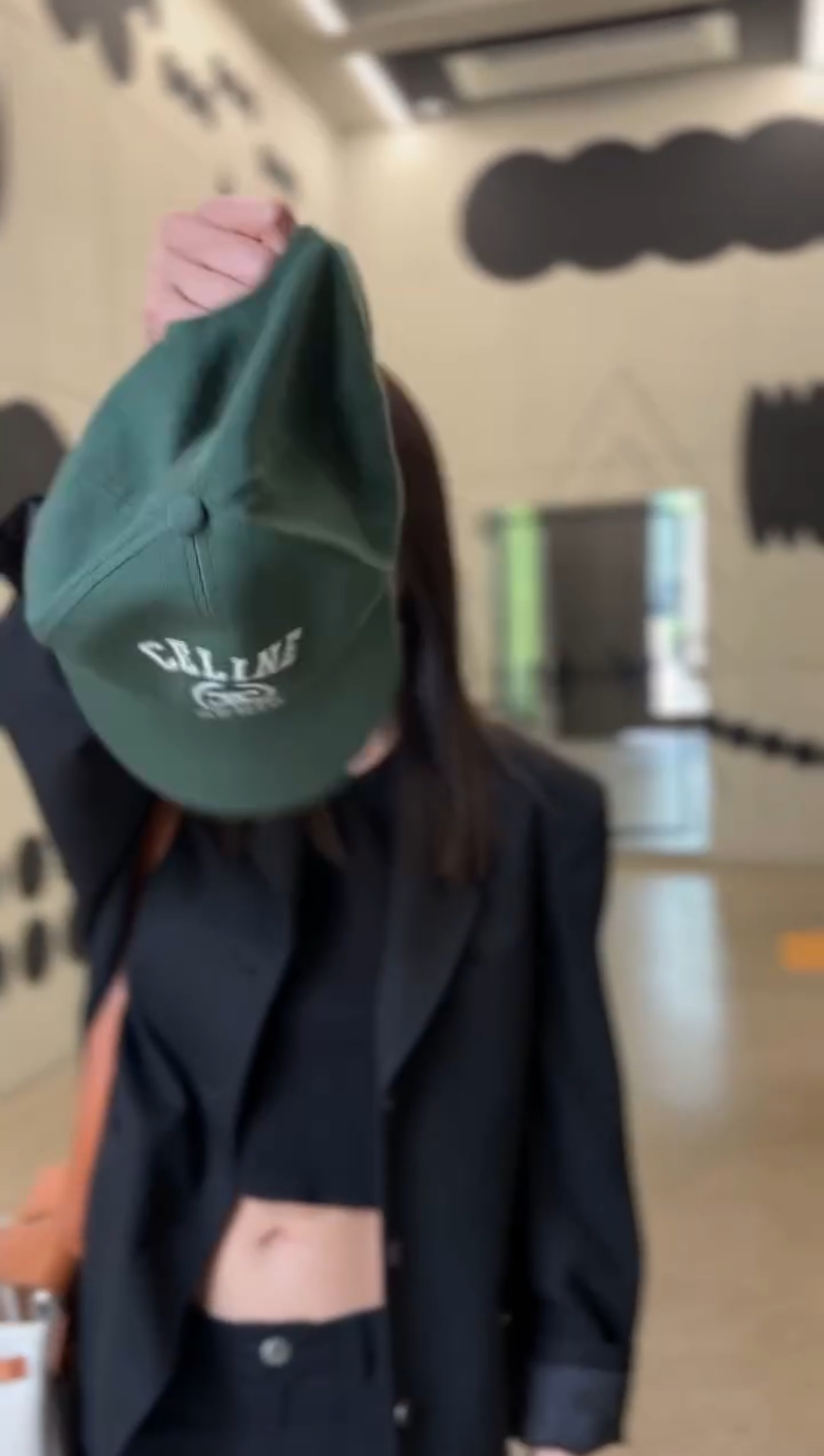 ちょっぴり照れたのかな?最近愛用しているCELINEのキャップを、カメラの前でふわっと振ってみせて。🤭