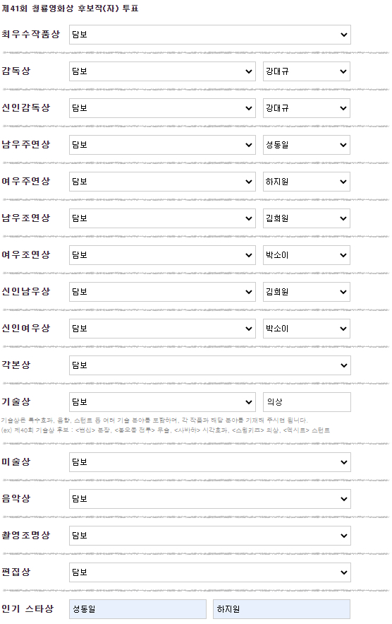 12月11日に仁川パラダイスシティで開催される第41回青龍映画賞候補作選定投票が始まりました!✨