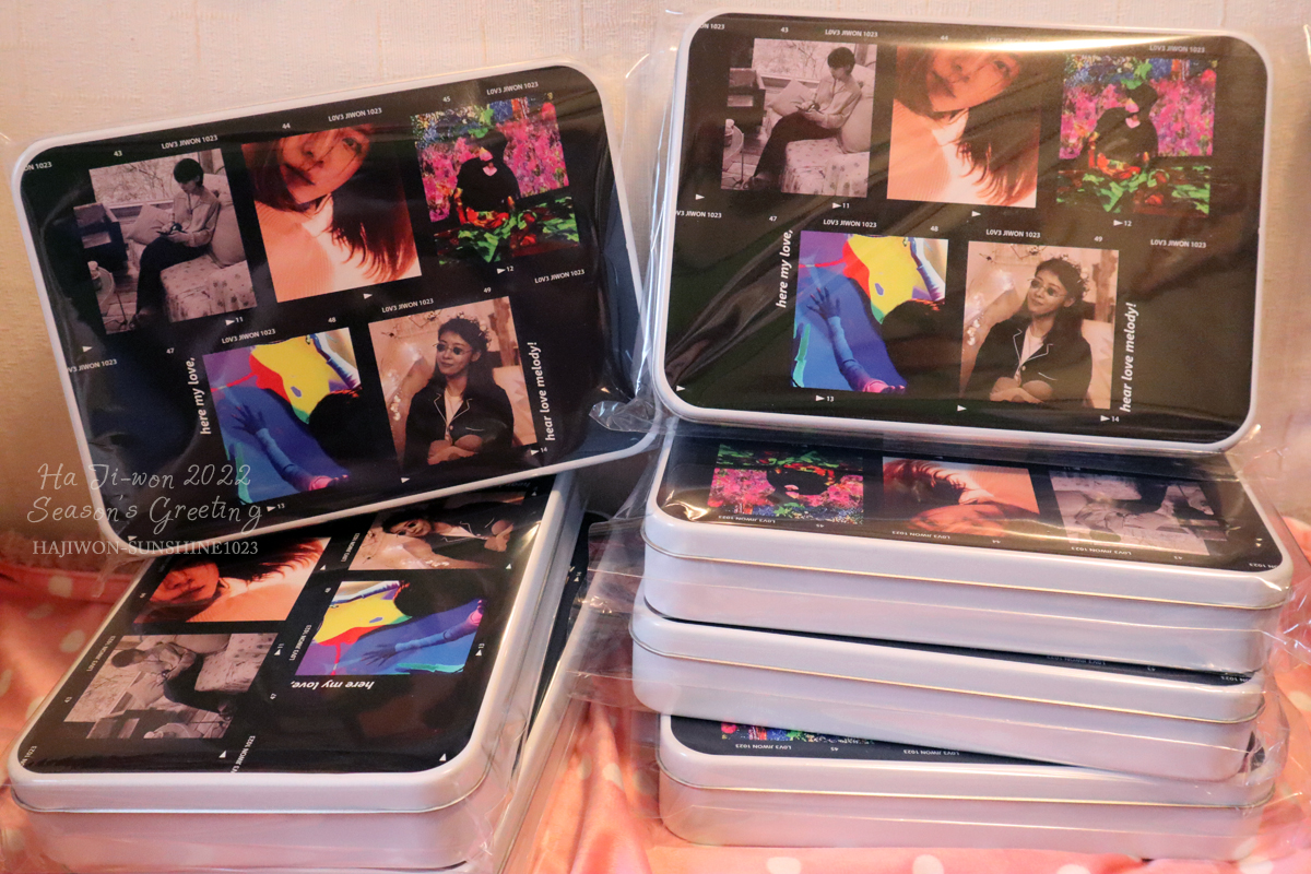 ジウォンオンニの秘蔵写真がプリントされているスチール缶ケースの中にはカレンダーやグッズが入ってます。😍