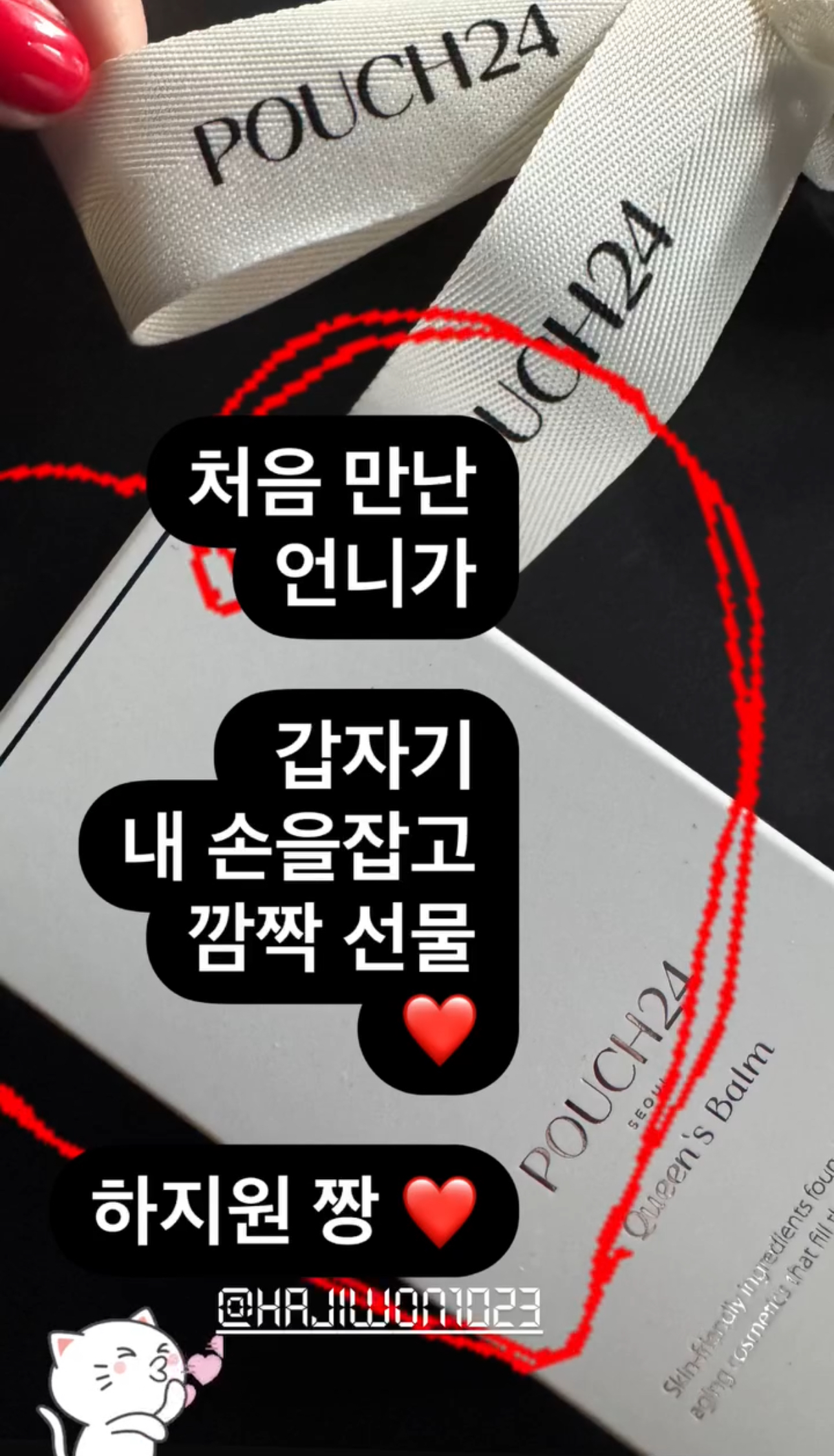 お日さまがコ・ジュニさんにプレゼントしたのは、POUCH24の퀸즈밤(Queen’s Balm)!🎁