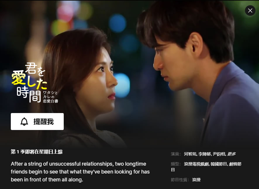 ハ・ジウォン X イ・ジヌク主演ドラマ【君を愛した時間(너를 사랑한 시간)】12月20日(日)より日本Netflixで配信スタート