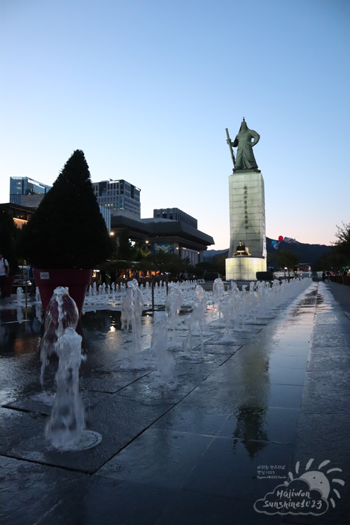 光化門広場には18mの高さまで吹き上げる約200個の噴水⛲️と