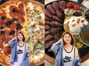 左はペパロニのピザ、右はアーモンド&チーズ・ハニーのピザ。💕