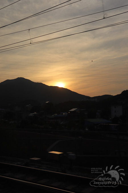 車内から眺める夕日がきれいで、思わずシャッターを切りました。