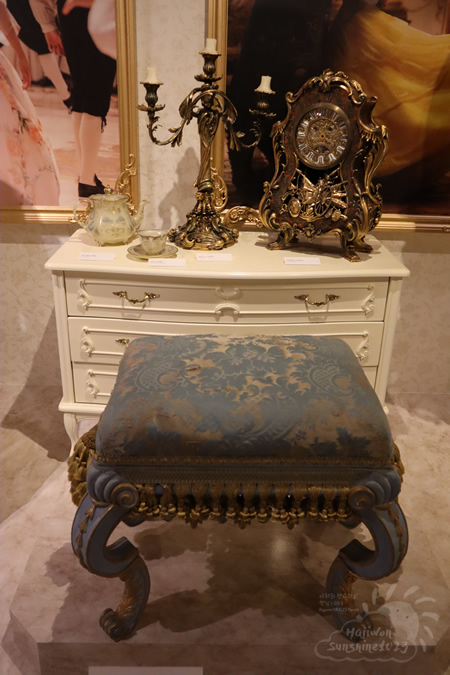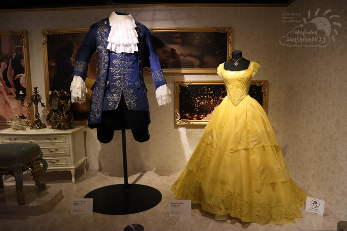 映画『美女と野獣』のベルと野獣のコスチュームが展示されています。