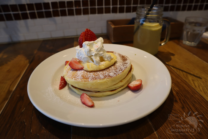 今回チョイスしたのは、ストロベリーカスタードパンケーキとハニーレモネード。🍓
