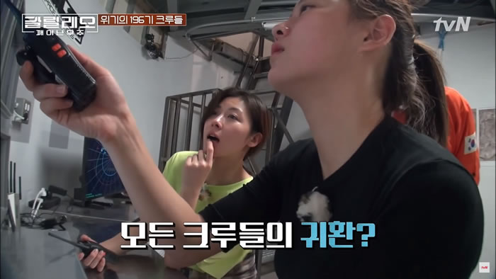 モニター越しに本部に戻ってきたクルーたちを見た時のジウォンオンニ、