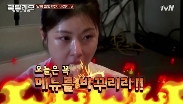 そして無表情にシリアル?を食べてるジウォンオンニ・・・😆