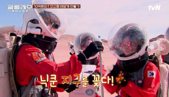 地球を見たら、目に涙が浮かんだジウォンオンニ。😢