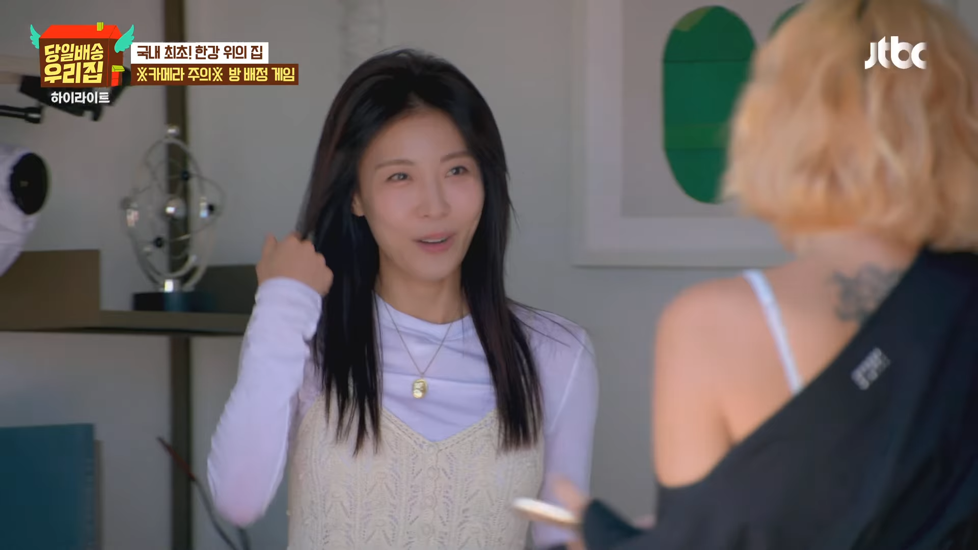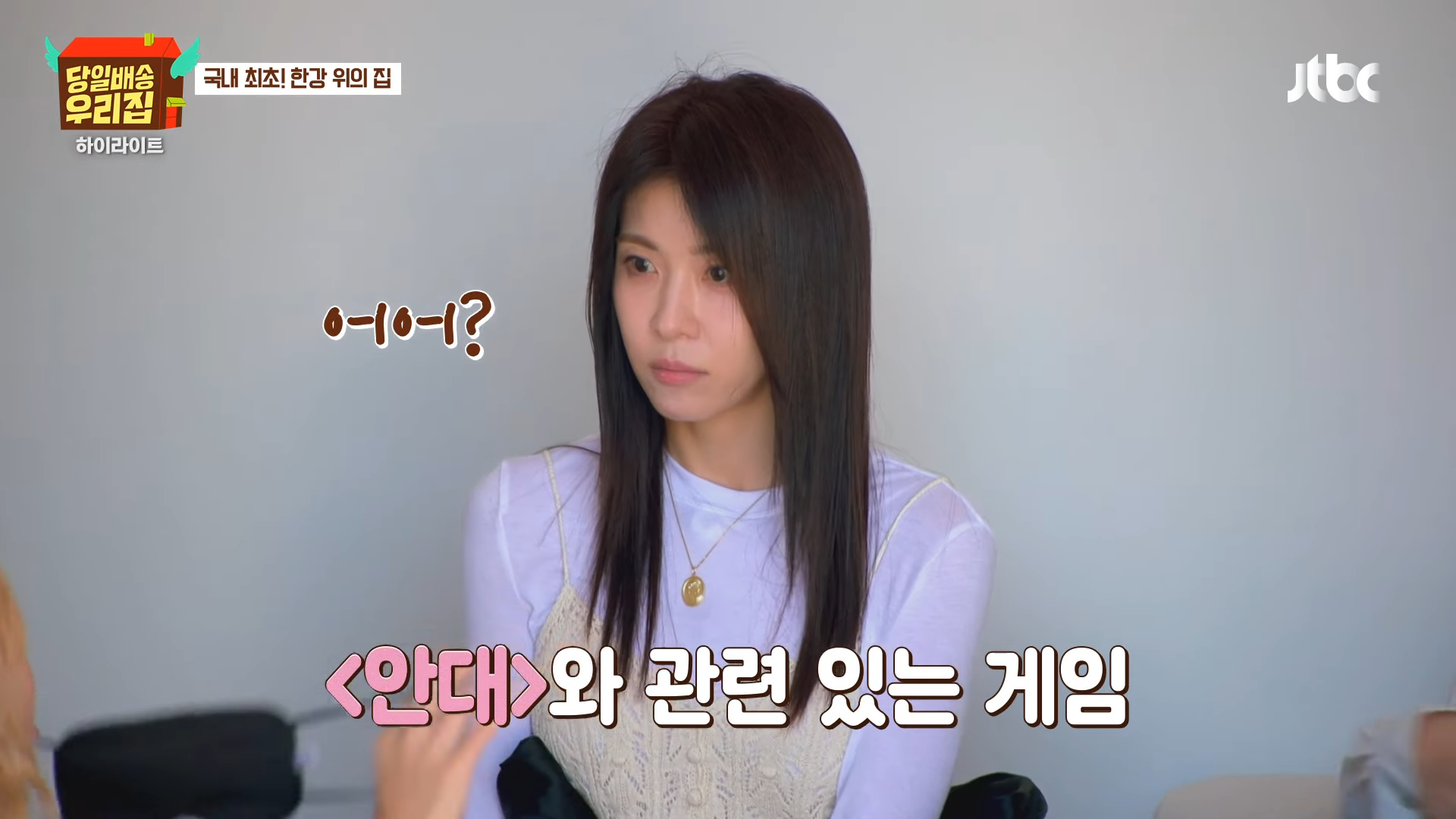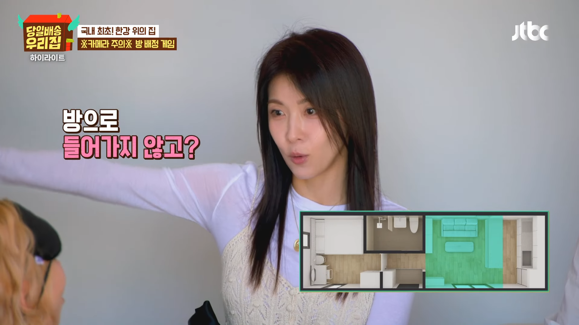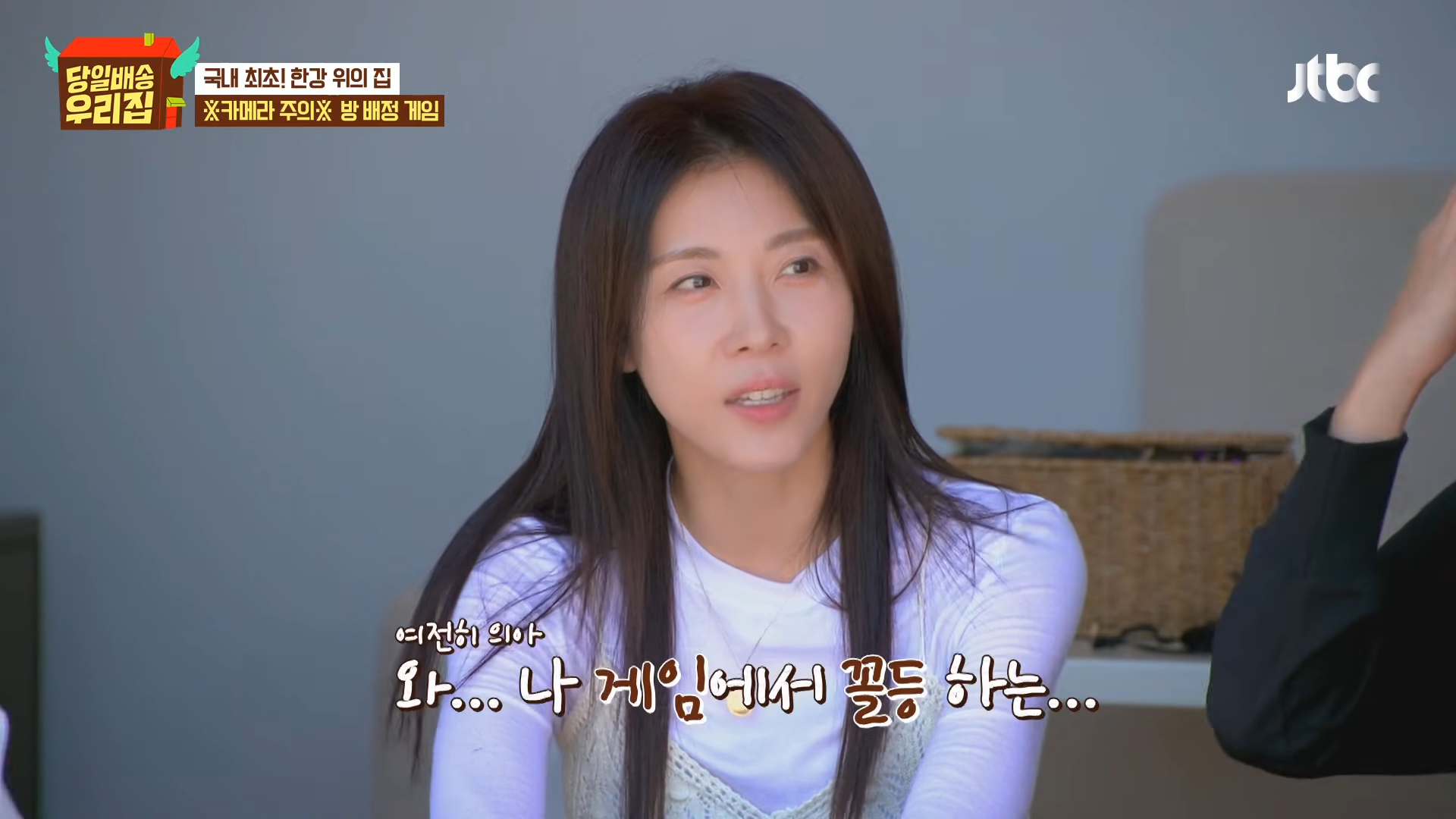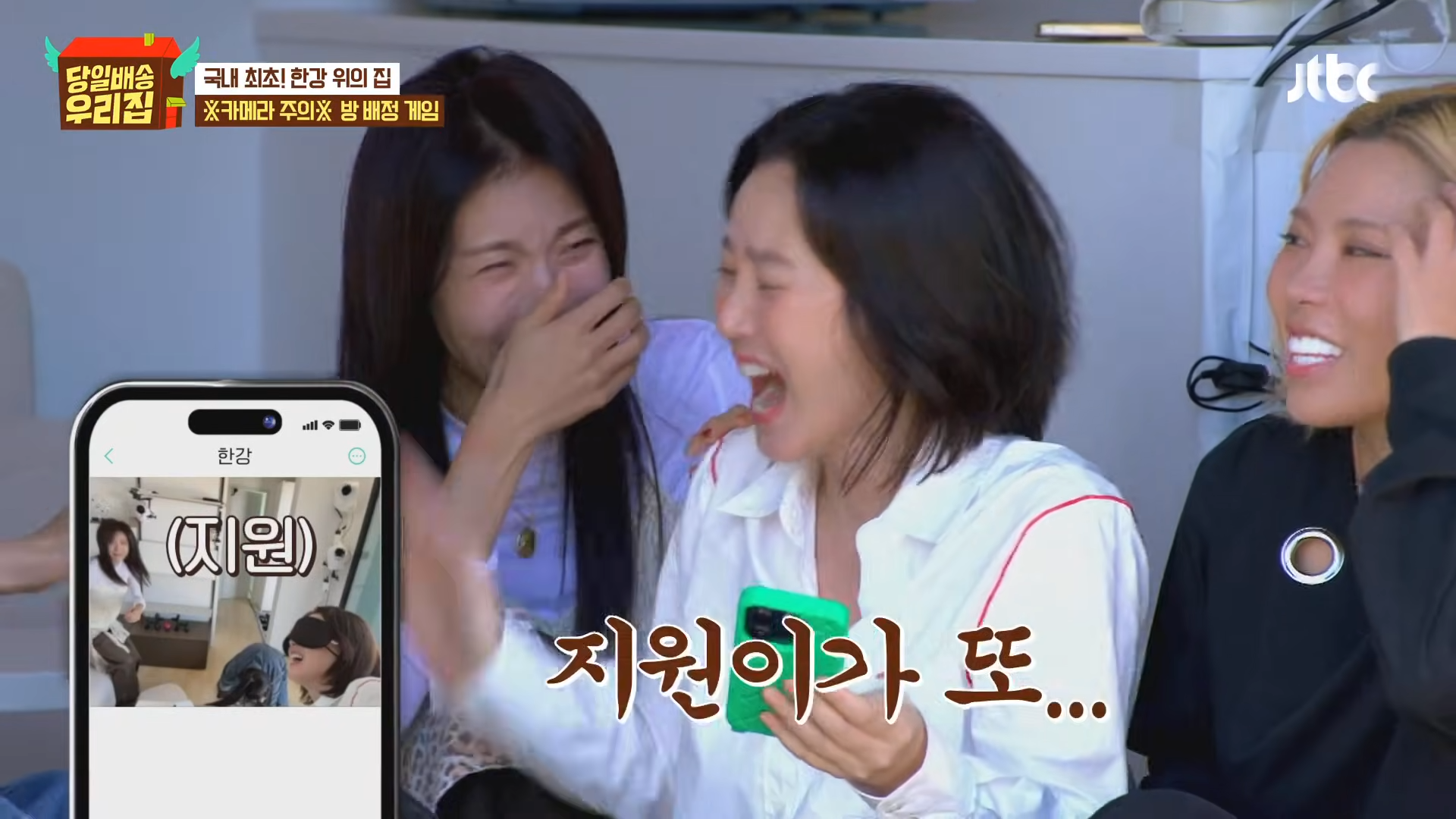 ハ・ジウォンは30日に放送されたJTBC『当日配送 我が家』で、キム・ソンリョン、チャン・ヨンラン、GABEEと共に漢江の上に配送された家の「部屋割りゲーム」に参加し、強烈な存在感を示した。アイマスクをした人がカメラを持って撮ったセルフィー10枚に写らなければ勝利するというゲームで、ハ・ジウォンは「私、ゲーム得意」と自信を見せた。