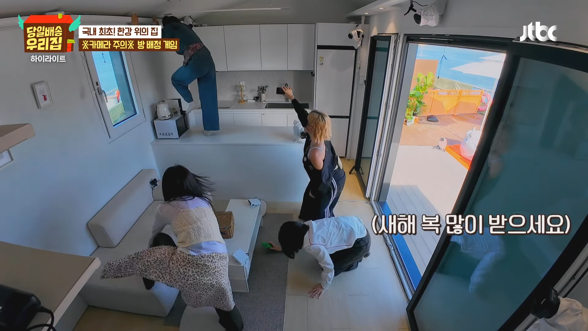 家の中に入って、メンバーたちはのんびりと漢江沿いのソウルの景色を満喫。
