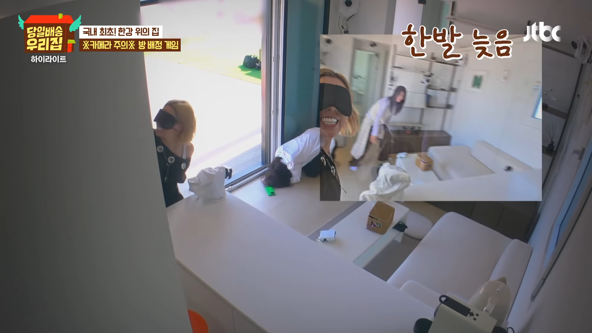 GABEEは部屋割りのためのゲームを提案し、ゲームを楽しむ出演者たちは笑顔を隠せなかった。ゲームの結果、チャン・ヨンランが1位となり、漢江ビューを期待しながらリビングを選んだ。キム・ソンリョンとGABEEは部屋で寝ることになり、ハ・ジウォンは狭いテーブル横のスペースで寝ることになった。