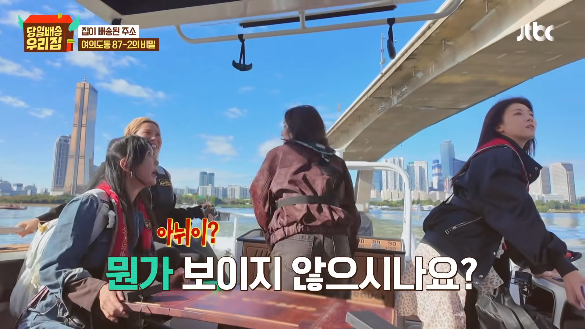 船が漢江沿いに移動して「どこへ向かっているんだろう?」とメンバーたちが話していたら、