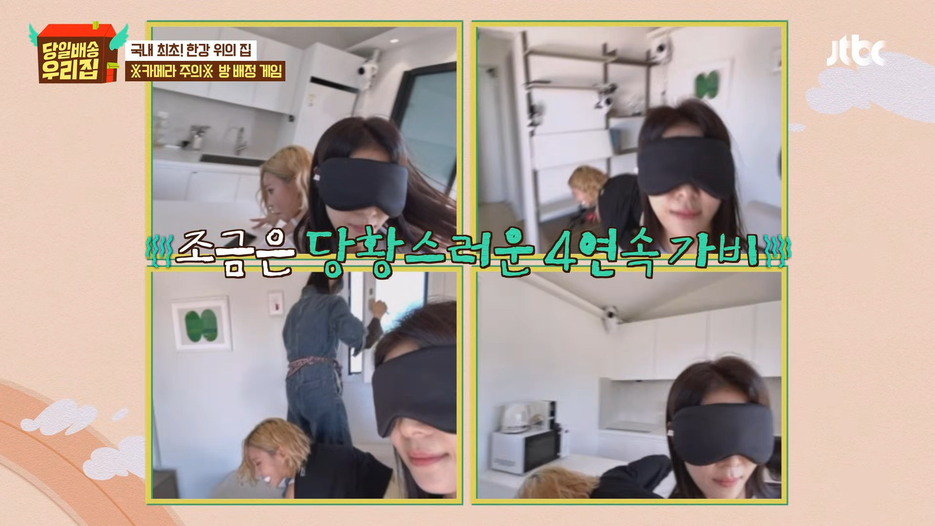 ロマン代理人GABEEが漢江の上に浮かべた家は完璧だったが、部屋が一つしかないという欠点があった。部屋を決めるために、アイマスクをした人がカメラを持って撮った10枚の写真に写らなかった人が勝利するというゲームをした。