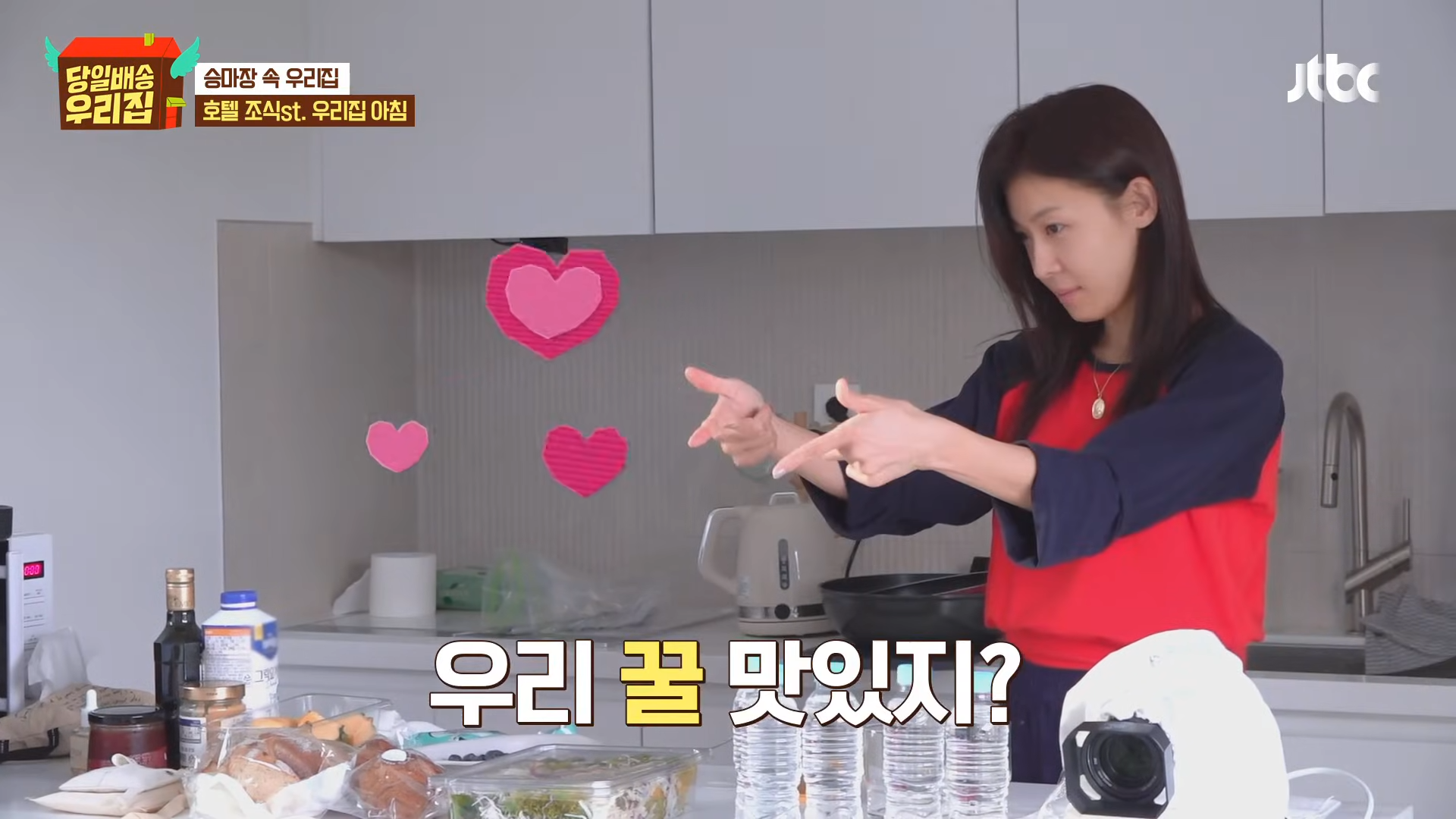 この日、乗馬場に家を作った彼らは朝から華やかな朝食を楽しんだ。各種チーズ、バゲット、ハ・ジウォンが田舎の隣家から直接取り寄せた上質な蜂蜜、アボカド、ブルーベリーヨーグルト、リンゴ、柿、ピーナッツバターなどが食卓に並んだ。